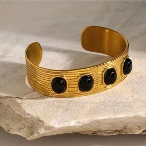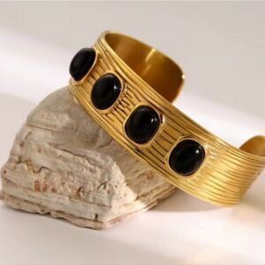 New ANTHRO Black onyx stone gold ss cuff bracelet