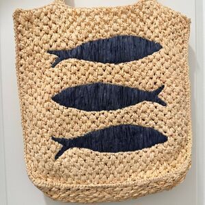 New ANTHROPOLOGIE Farmers Market Raffia Tote - Blue