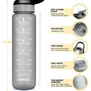 Bottle 36oz with Time Marker & Straw 360° Leak-Proof
