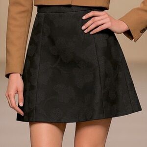 Bellisimo! Photos cannot do this beautiful Armani designer skirt justice! Antinea is a sophisticated flare mini length skirt artfully crafted in an elegant flowing floral silk jacquard fabric layered over a solid black silk lining…