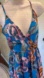 ASOS Swim cover up maxi beach dress. Blue oversized bright floral tapestry print. Lightweight woven fabric. Plunge neck with crossover back straps. Relaxed fit, falls loosely over the body. High front left side slit.