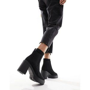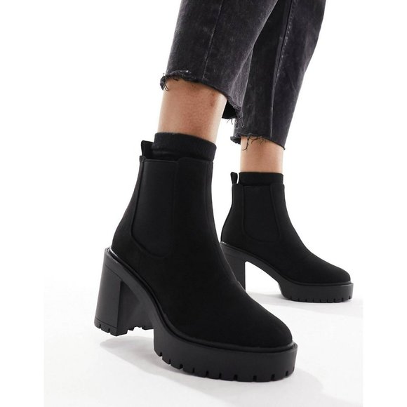 New ASOS DESIGN Elma heeled chunky chelsea boots in black Size 10