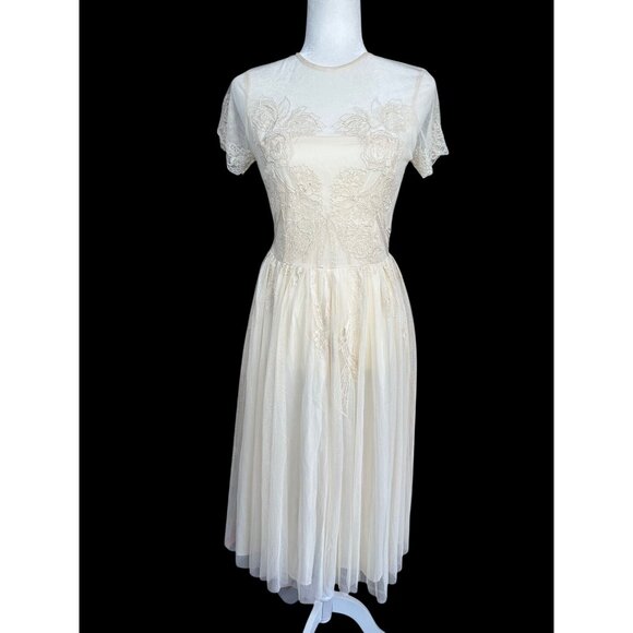 New ASOS Design Formal Cocktail Midi Dress Size 4 Ivory Embroidered Floral