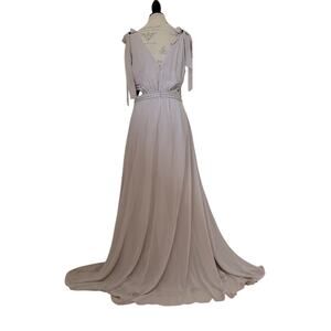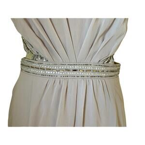 New ASOS gray silver beaded Greek style side cut out maxi gown size US 8