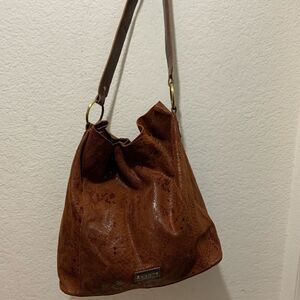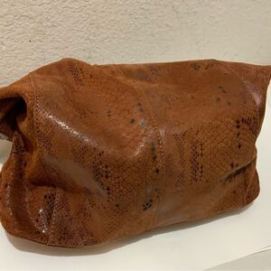 New ASSOTS LONDON Brown Snake Foil Pattern Genuine Leather Hobo Bag