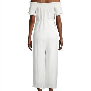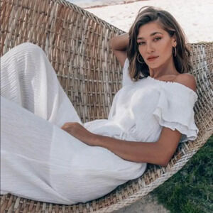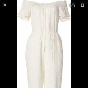 New without tags, ASTR the Label brand women’s size S jumpsuit. Flowy white material with a tie waist. Wide leg pants and a off the shoulder top. So cute and perfect for vacation or a new bride to be! In perfect condition, no rips to stains.