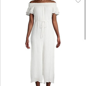 New ASTR Maura Off the Shoulder Wide Leg Flowy Jumpsuit