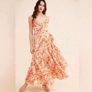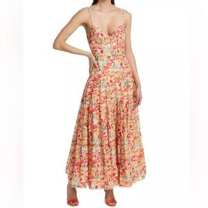 New ASTR Revolve Tazia Floral Button Tiered Maxi Red Dress