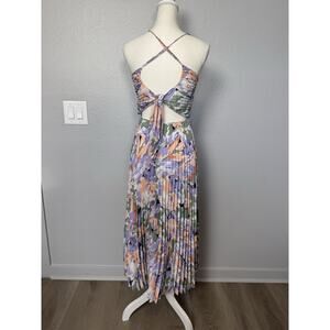 New ASTR the Label Blythe Floral Plisse Midi Dress Coral Multi Size M Pleated