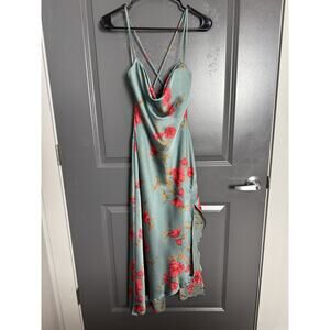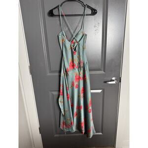 New ASTR the Label Gaia Floral Midi Slip Dress Teal-raspberry Size XS Cowl Neck