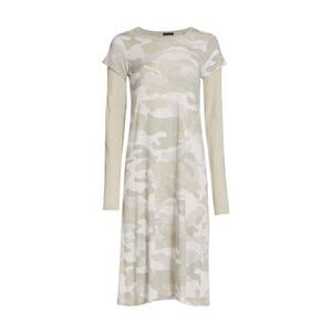 Soft jersey cotton dress layered at the sleeves features a camo print and slub-knit at the sleeves.Jewel neckLong sleevesPullover style100% cottonHand washImported
