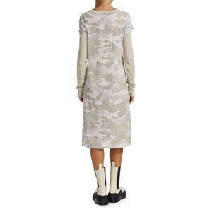 New ATM Anthony Thomas Melillo Slub-Knit Layered Midi Dress in Camo Medium