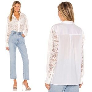 New ATM Revolve Cotton Lace Straight Shirt in Snow XS