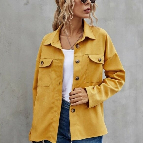 New AVEC LES FILLES French Terry Pigment Dyed Mustard Cotton Blend Shacket Sz M