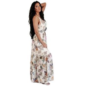 New Aakaa floral maxi sundress with tassel tie at the waist, adjustable straps, fully lined and no side pox. Bust 26”, length 49” and waist 30”. Brand new with no tags attached.
