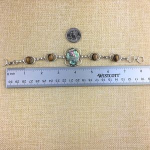 New Abalone & Tigers Eye Gemstone Silver Overlay Bracelet 7 1/4 & 8