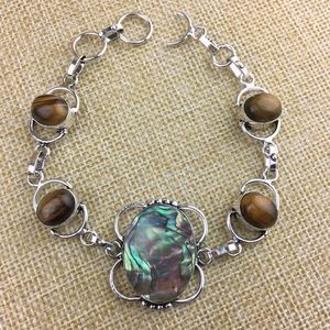 New without tags. Abalone Shell and Tigers Eye Stone Bracelet. Luster varies with light and angle. Toggles are approximately 7.25” & 8”. Handmade so it’s not perfect, silver plated.
