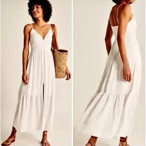 Abercrombie & Fitch white maxi dress with a button-front and tiered skirt