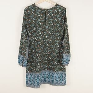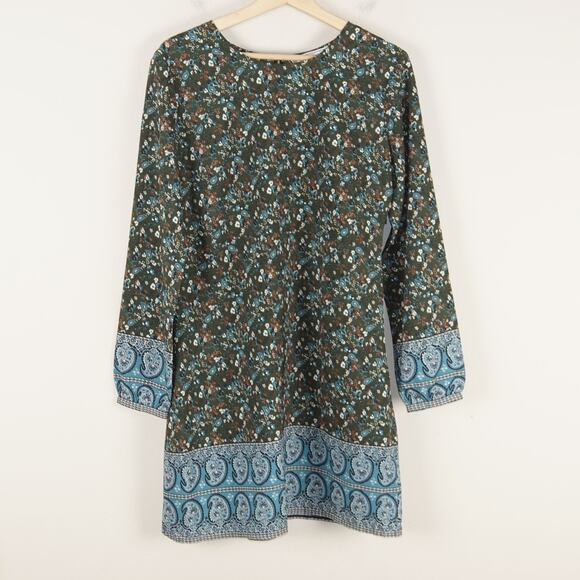 Abercrombie & Fitch Long Sleeve Floral Green Blue Paisley Shift Dress Womens L