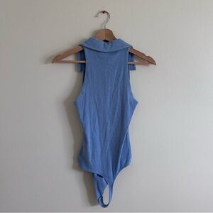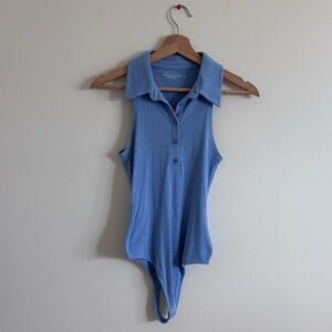 New Abercrombie & Fitch Womans Small Soft A&F Ribbed Polo Bodysuit Blue
