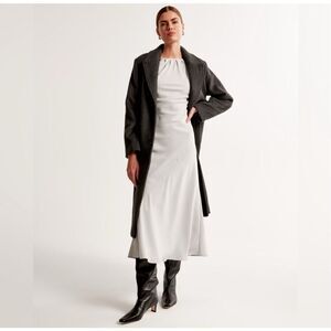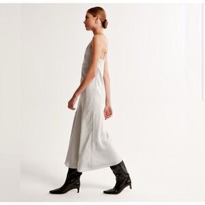 in Silver. Slim fitting maxi dress in A&F’s elevated Cupro fabric. Featuring high neck with cinched details, open back, & clean skirt. Brand new with tags. No holes, rips, or stains. Ours is a smoke free home.