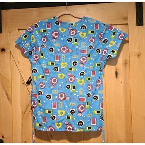 New Absolute Scrub Top Size M. Abstract Fun Colorful Blue Pink Green. Hearts
