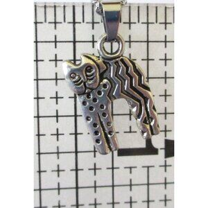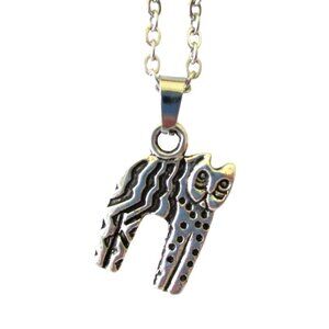 New Abstract Cat Pendant Necklace on 18" Stainless Chain Unique Cat Lover Jewelr