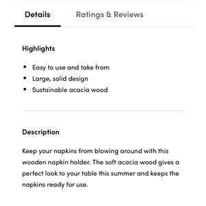 New Acacia Wood Napkin Holder NWT Matte Finish Summer Outdoor Patio Dining Wind