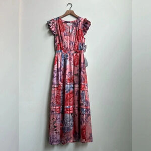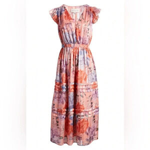 New Adelyn Rae Emmie Pleated Midi Dress in Desert Coral Size XS Metallic Flutter