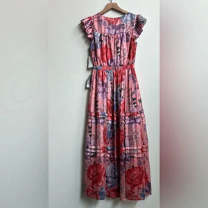New Adelyn Rae Emmie Pleated Midi Dress in Desert Coral Size XS Metallic Flutter
