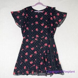 New! Adelyn Rae floral print black red dress with white dots, size 1X