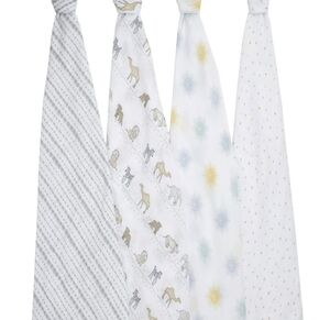 As a trusted leader in baby products, Aden + Anais is known for its generously sized swaddle blankets, delivering optimal versatility. Their signature muslin weave is carefully crafted with the finest yarn for durability and supreme quality. Cotton muslin is classically breathable + extremely versatile for bedtime + beyond. The Aden + Anais Essentials Unisex Muslin Swaddle Blankets for infants are your go-to basic for whatever the day throws your way. They can be a clean surface for diaper changes, sop up a mess, offer privacy for nursing, or a soft spot for playtime. The Aden + Anais Essentials 4-packs make it easy to always have one on hand.