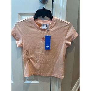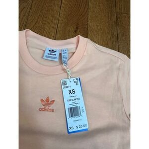 New Adidas Originals Women's ESS Slim Tee Shirt Peach Logo New with Tags XS