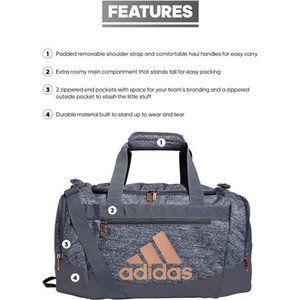 New Adidas Unisex Defender 4 Small Duffel Bag (Onix Grey/Rose Gold)