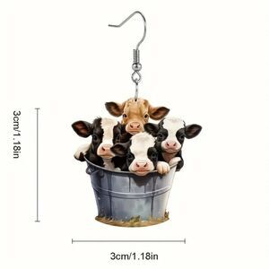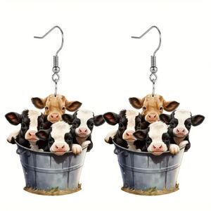 New Adorable Bucket Cow Design Dangle Acrylic Earrings