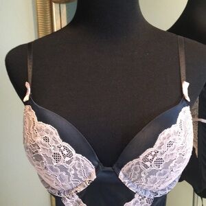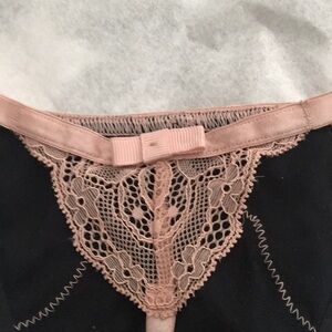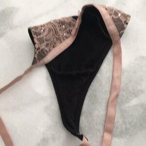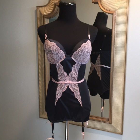 Adore Me Black Bustier with Pink Lace and Sparkling Gemstones Garter Corset & Thong Panty