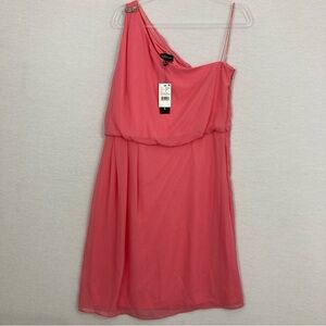 New Adrianna Papell Pink Salmon One Shoulder Embellished Evening Dress size 16