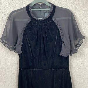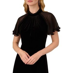 New Adrianna Papell Ruffle Chiffon Sleeve Velvet Sheath Dress Black Sz 10