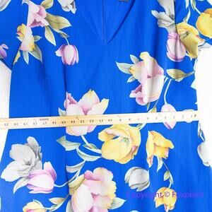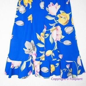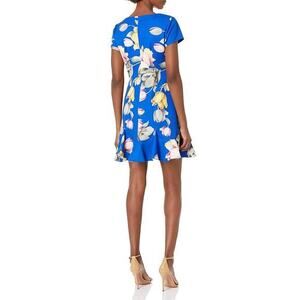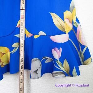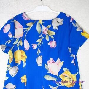 This Fun And Flirty A-Line Dress In A Stunning Tulip Floral Printed Stretch Woven, Features A V Neckline, Short Sleeves, And A Scalloped Flounce Hem.