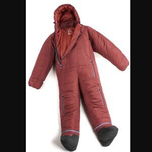 DESCRIPTION: Adult sized Original recycled wearable sleeping bag in color Burgundy Earth