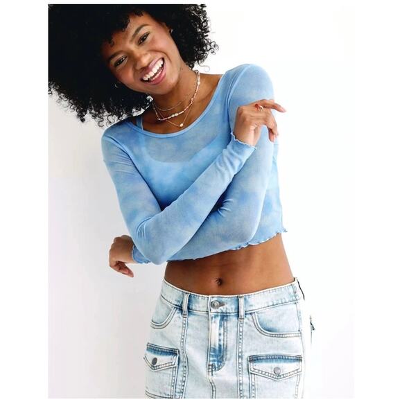 New! Aerie Blue Magic Mesh Cropped Long Sleeve T-shirt Sheer Womens Size Medium