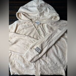 New with tags. Size XL. Full zip. Cropped hoodie. Terry cloth inner. Love the sweet message on the sleeve.