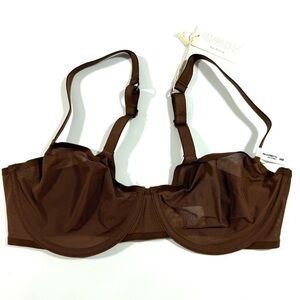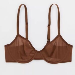 New Aerie SMOOTHEZ Sheer Mesh Balconette Bra Unlined Underwire Brown Size 36D