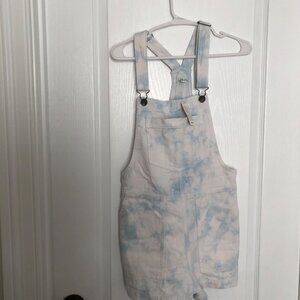 New Aerie Women's XS Tie-Dye Denim Overalls - Light Blue & White NWT