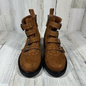 New Aerosoles Arezzo Faux Brown Suede Biker Bootie with Buckles #723