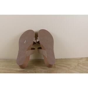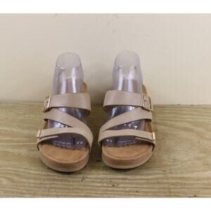 New Aetrex Womens Sandals 10 Brown Beige Leather Wedge Cork Sole Buckle