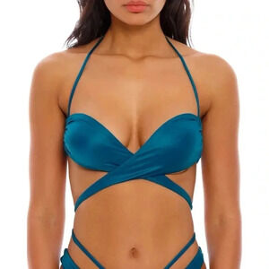 New Agua Bendita Harriet Bikini Top Swim Criss Cross Halter Menfus Drop in Blue