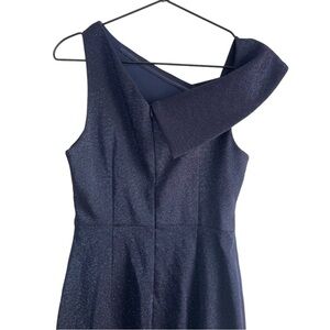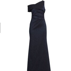 New! Aidan Maddox Asymmetrical Neckline Glitter Gown