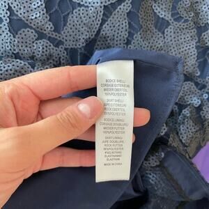 New Aidan Mattox Blouson Navy Sequin High Slit Maxi Dress Gown 0