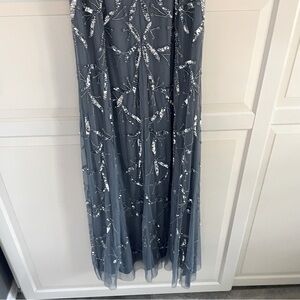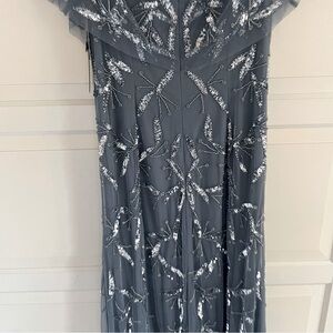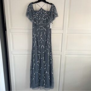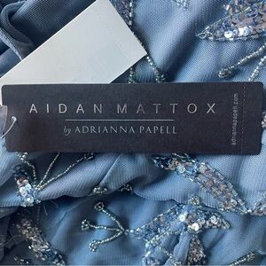 NEW Aidan Mattox Blue Embellished Off-the-Shoulder Halter Gown Size 10. NWT
